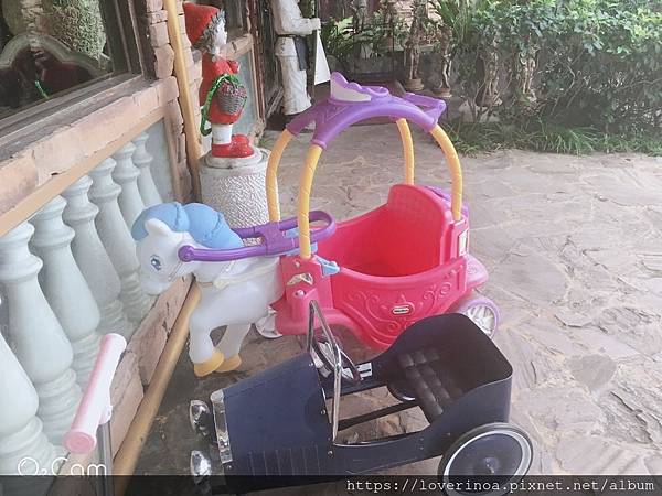 ~路上還有許多古董童車,公主童車,兒童滑板車~提供給住宿的小朋友們騎乘遊園,讓我們彷彿走入格林童話的美麗國度