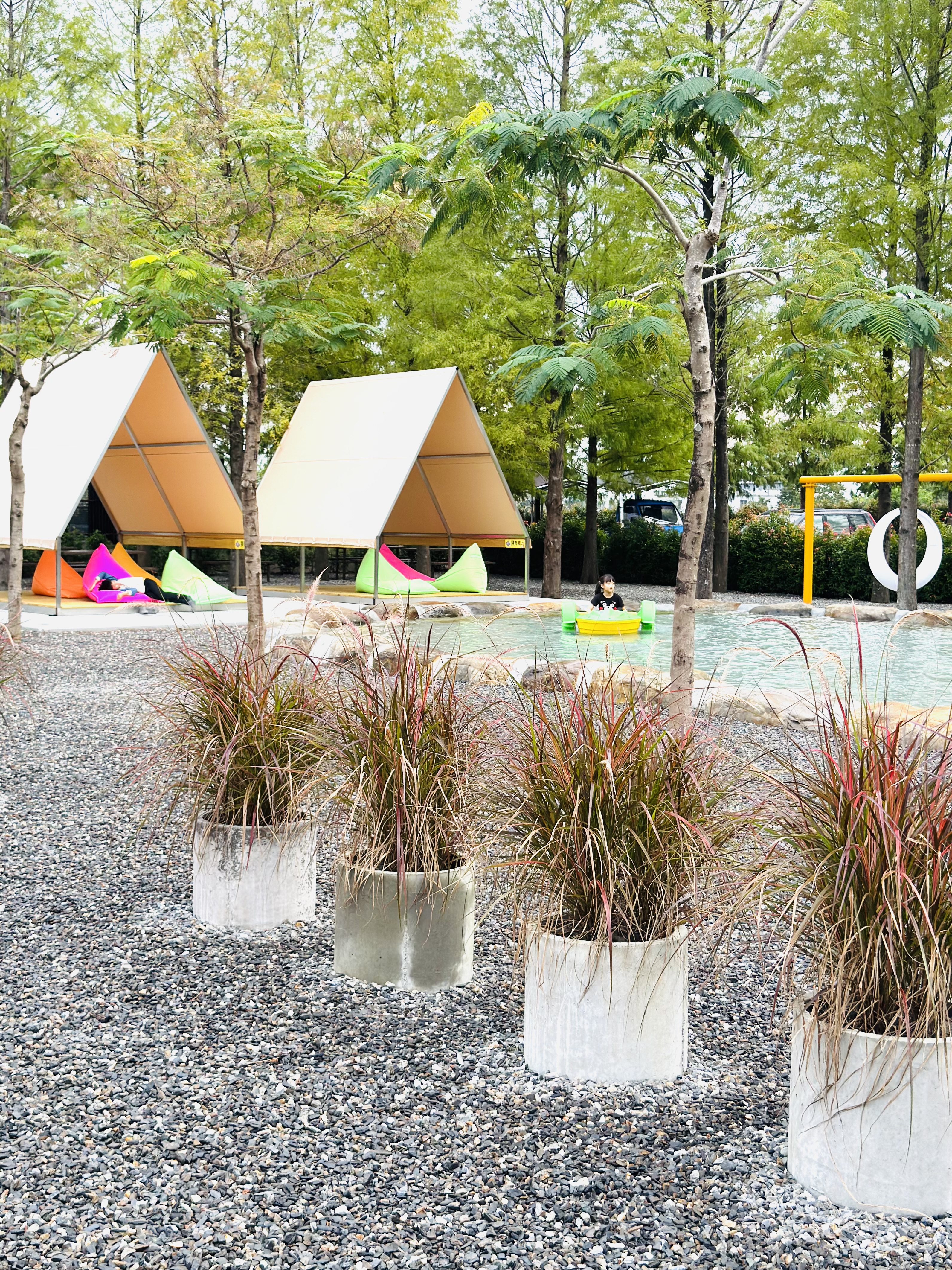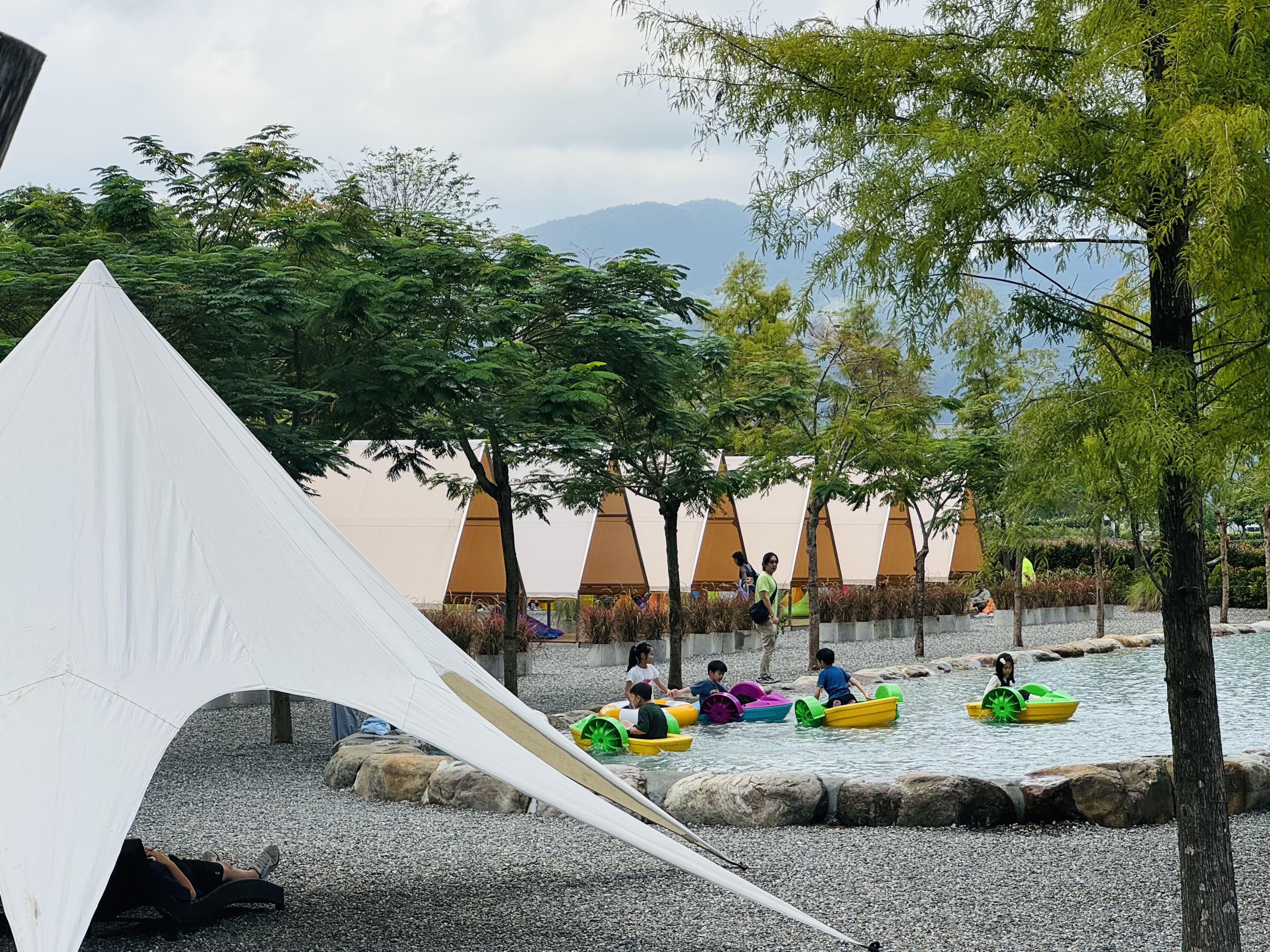 在往園區裡面走,這裡有帳篷休息區,可以讓爸爸媽媽們坐在這邊休息乘涼!