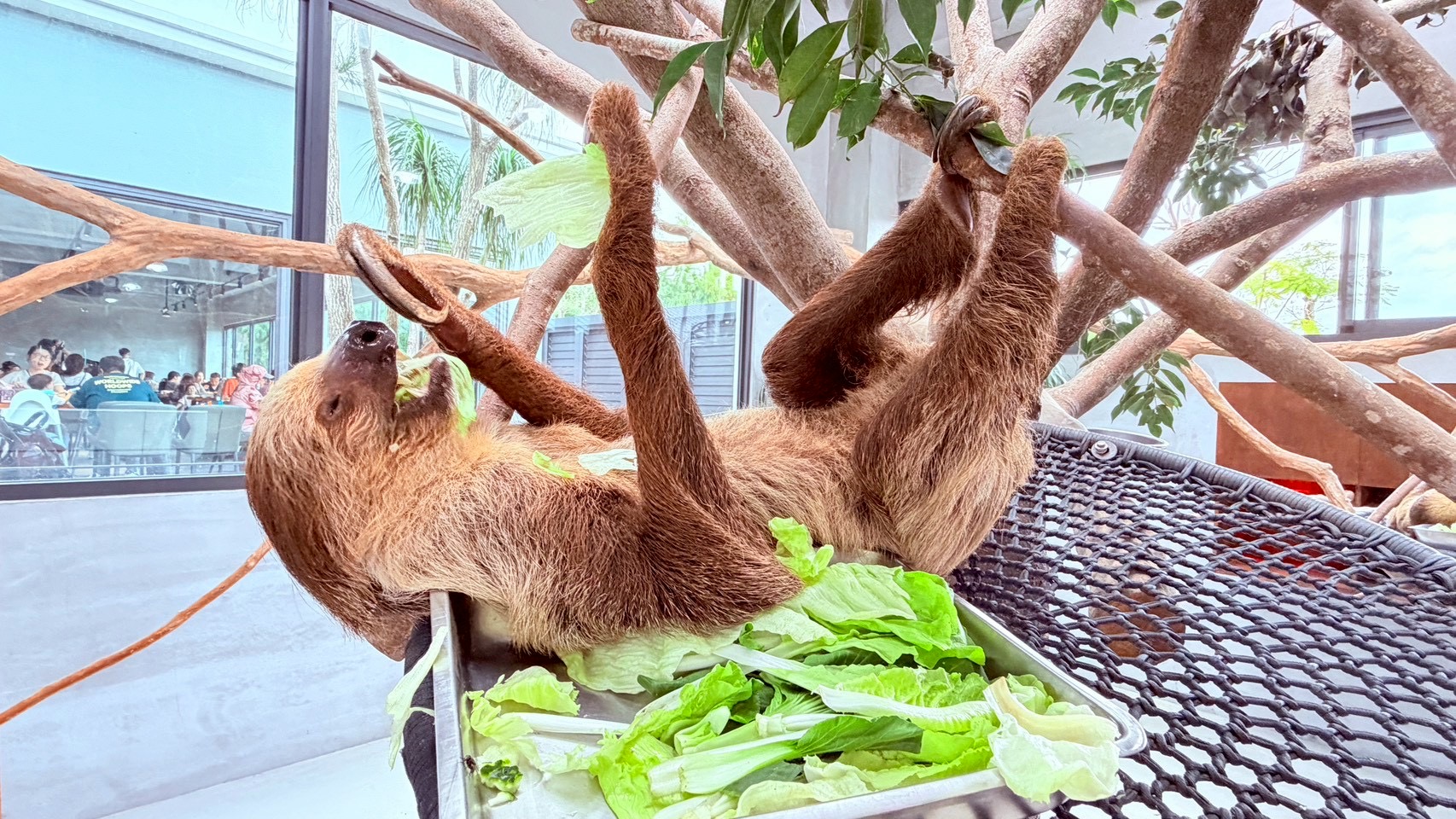一進場就到🦥 鎮園之寶:樹懶本尊!看他們生吃青菜好療癒喔