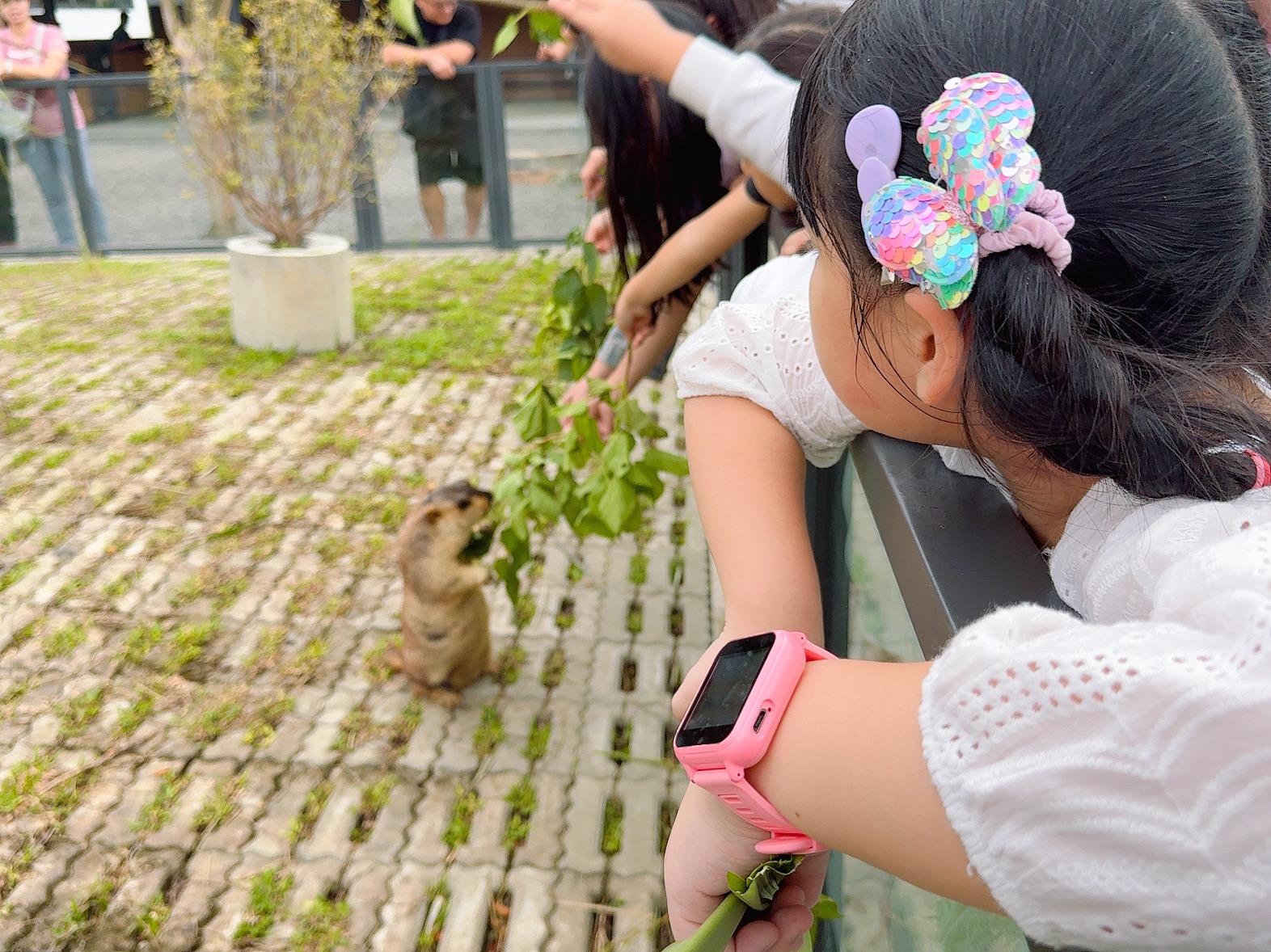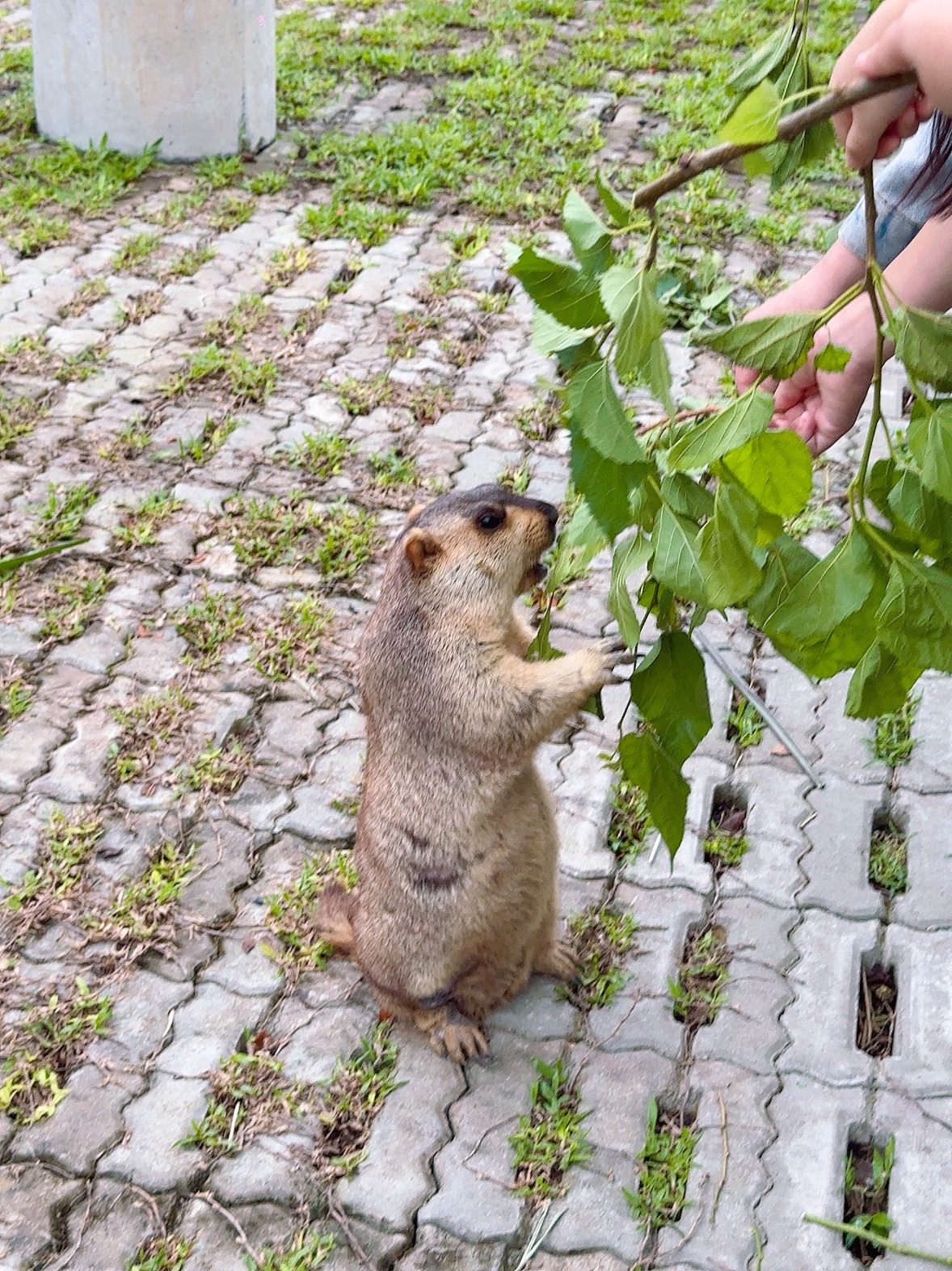 還有難得可以這麼近距離餵食站起來的土撥鼠,看著牠吃葉子的樣子超級專注